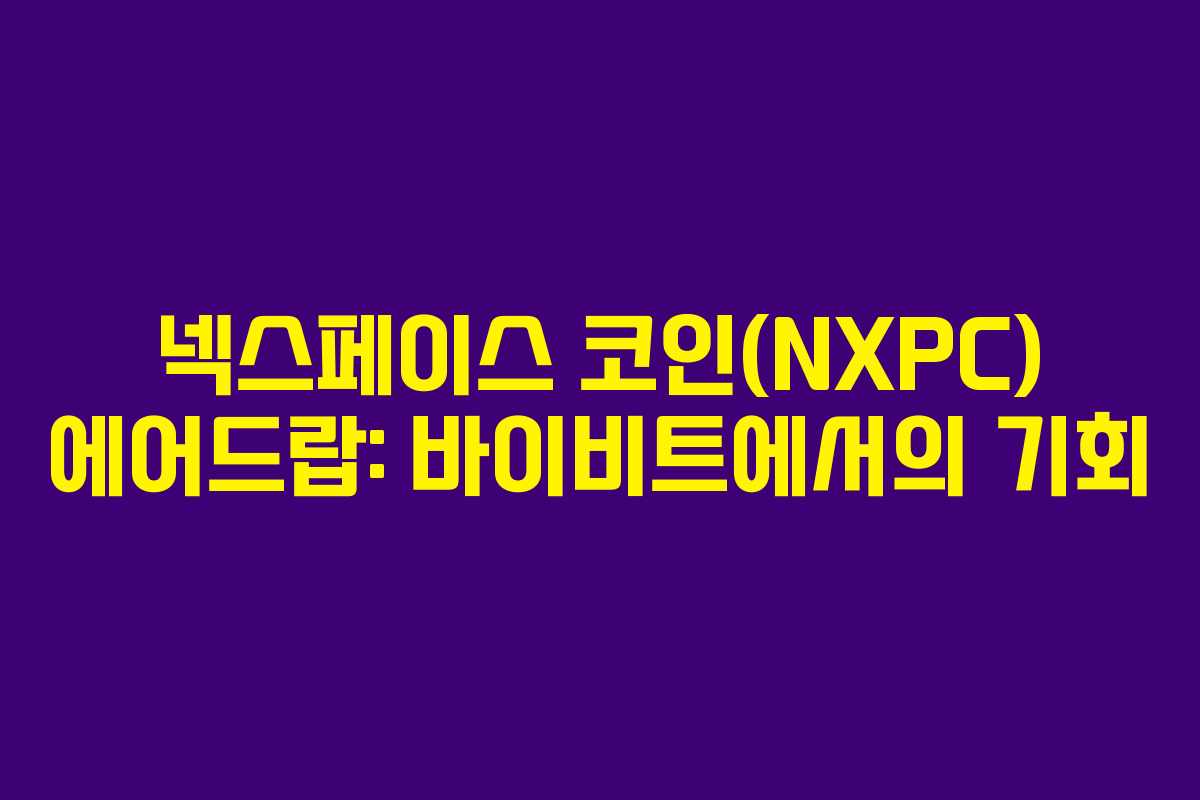 최근 넥스페이스 코인(NXPC)의 에어드랍이 많은 관심을 받고 있습니다. 국내 거래소인 업비트와 빗썸에서의 에어드랍이 종료된 지금, 해외 거래소인 바이비트에서 진행하는 신규회원 대상 에어드랍 소식에 주목할 필요가 있습니다. 이 글에서는 바이비트에서 제공하는 NXPC 에어드랍의 상세 정보를 안내하겠습니다.
