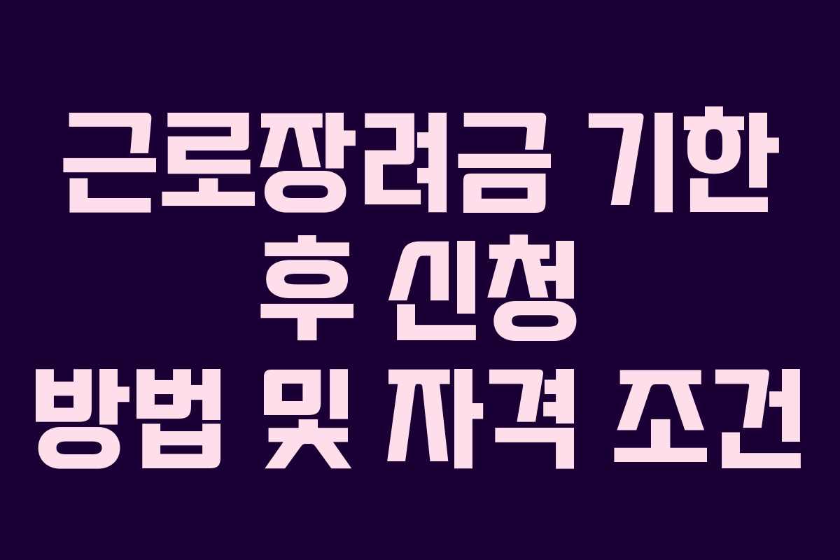 근로장려금은 저소득 가구에 필요한 중요한 지원금입니다. 정기신청을 놓친 경우에도 기한 후 신청을 통해 혜택을 받을 수 있으니, 자격 조건을 잘 확인하고 신청 기간을 놓치지 않도록 하세요.