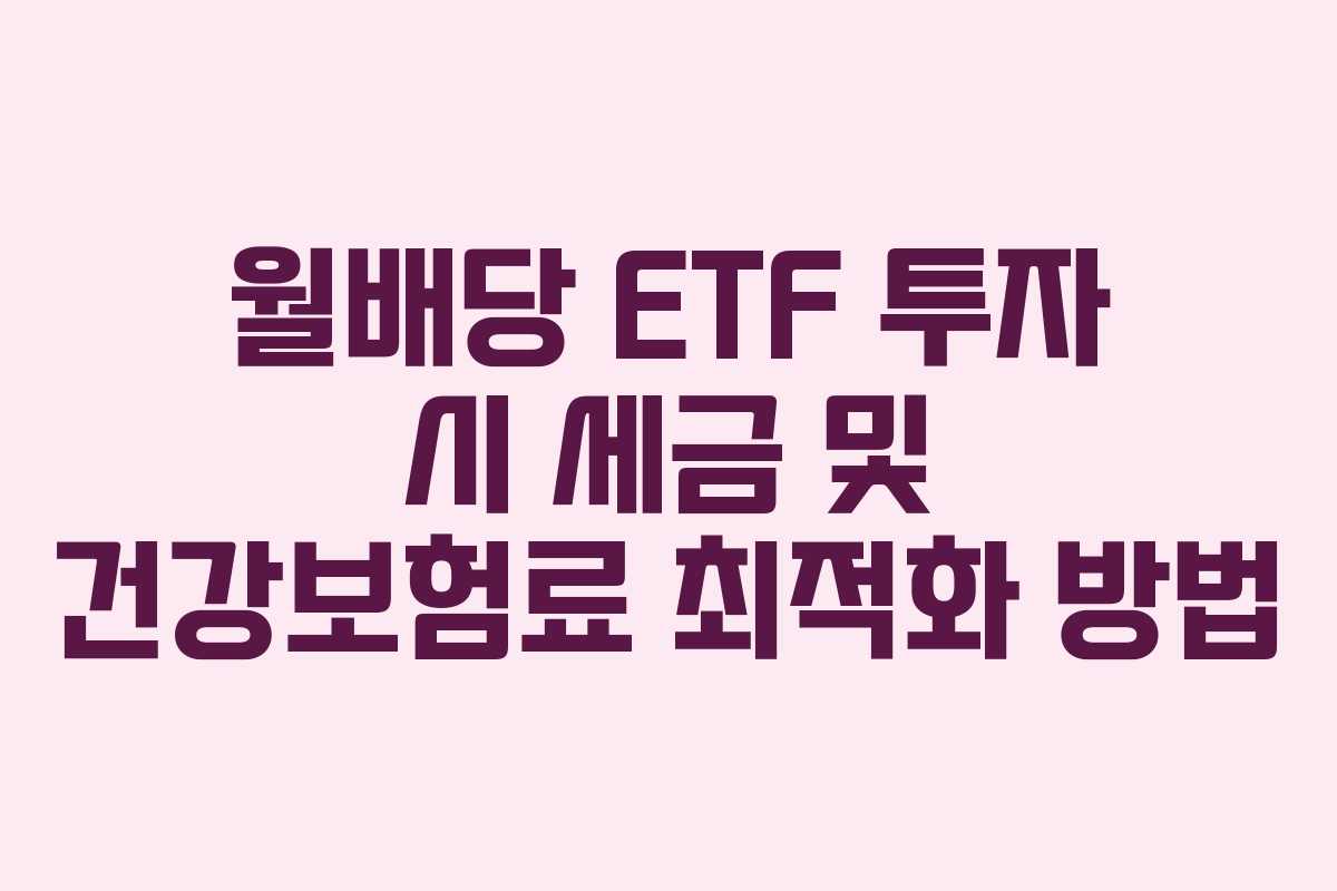 월배당 ETF에서 발생하는 분배금은 세금과 건강보험료에 영향을 미칠 수 있습니다. 따라서 투자자들은 이러한 요소를 고려하여 절세 및 보험료 부담을 최소화하는 전략을 세우는 것이 중요합니다. 이번 글에서는 월배당 ETF의 분배금에 대한 세금, 건강보험료, 그리고 절세 방법에 대해 자세히 살펴보겠습니다.