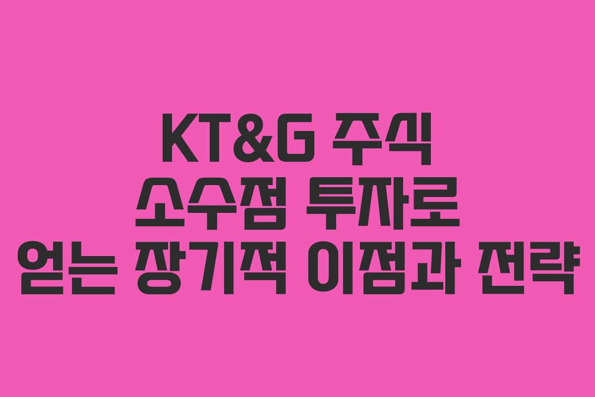 KT&G 주식을 매주 정해진 금액으로 소수점 매수하는 방법은 투자자에게 안정적인 수익을 추구할 수 있는 좋은 기회를 제공합니다. 이는 재정적 안정성을 높이는 데 중요한 역할을 할 수 있으며, 장기적인 관점에서 투자 관리의 효율성을 증대시킵니다. 본문에서는 KT&G 주식을 소수점으로 매수하는 방법과 그 과정에서의 경험을 공유하며, 주식 투자에 대한 통찰을 제공하겠습니다.