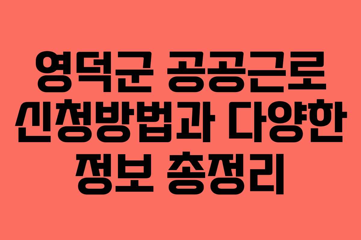 영덕군의 공공근로는 다양한 일자리 기회를 제공하며, 신청방법과 자격 요건이 명확하게 설정되어 있습니다. 이를 통해 지역 주민들이 안정적인 소득을 올릴 수 있도록 돕고 있습니다. 본 문서에서는 영덕군 공공근로의 신청 방법과 함께 월급, 후기, 실업급여, 자격 요건 등을 자세히 설명합니다.