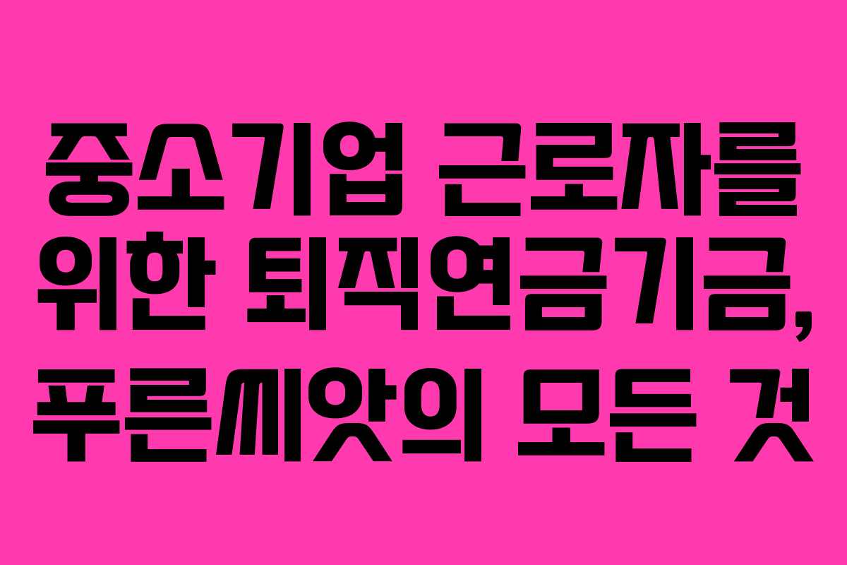 퇴직연금은 근로자의 노후를 준비하는 중요한 수단이며, 중소기업 근로자들에게는 특히 더 필요한 제도입니다. 푸른씨앗은 30인 이하의 중소기업에서만 가입할 수 있는 유일한 퇴직연금기금으로, 이 제도를 통해 근로자들은 수수료 면제 혜택과 안정적인 수익률을 기대할 수 있습니다. 이번 글에서는 푸른씨앗의 특징과 가입 방법, 지원 내용 등을 자세히 알아보겠습니다.