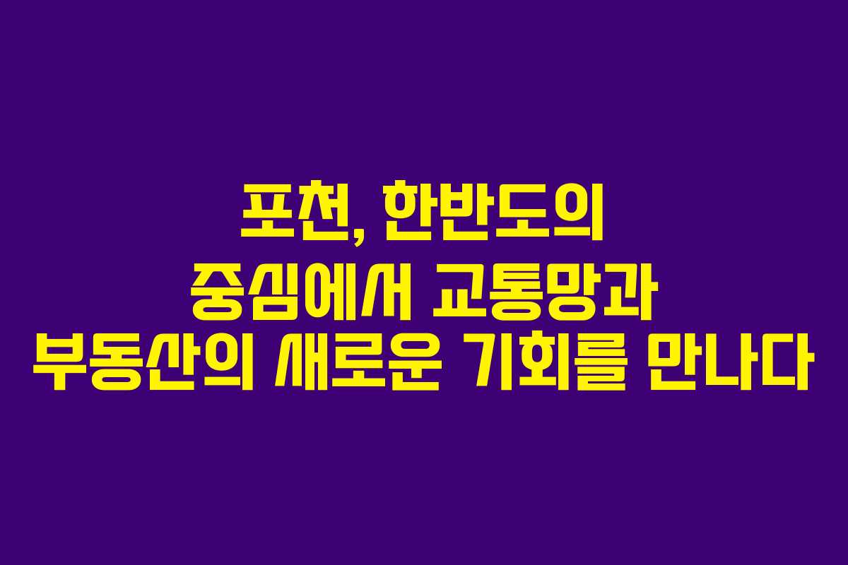 교통 인프라의 확충으로 인해 포천의 부동산 시장은 활기를 띨 것으로 예상되며, 이미 저평가된 지역의 부동산 가치가 상승하고 있습니다.포천과 서울 간의 이동 시간은 얼마나 걸리나요?