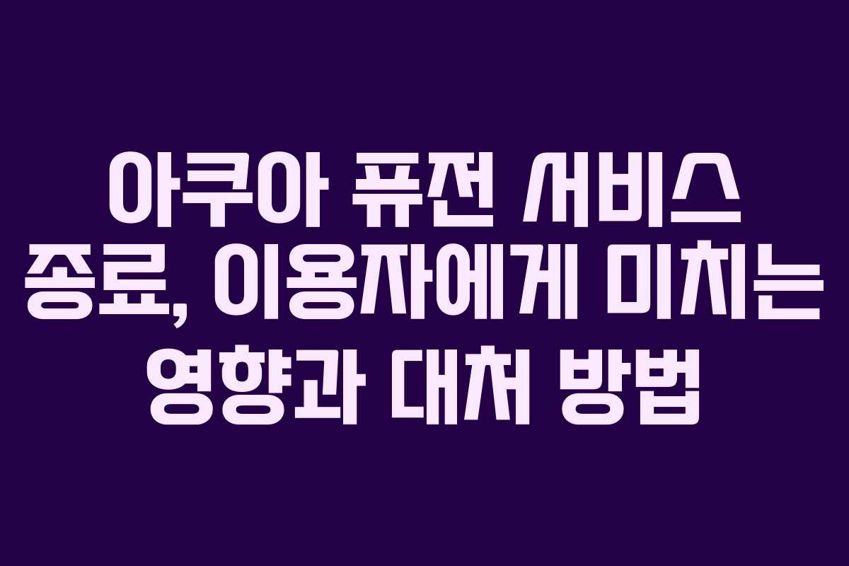 종료 후에도 아쿠아 퓨전의 커뮤니티는 일정 기간 유지될 가능성이 있으며, 이용자들은 그곳에서 정보 교류를 할 수 있습니다.서비스 종료의 이유는 무엇인가요