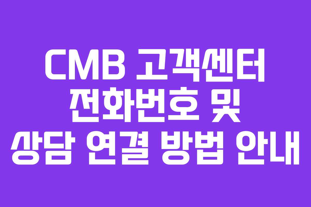 CMB 고객센터 전화번호 및 상담 서비스
