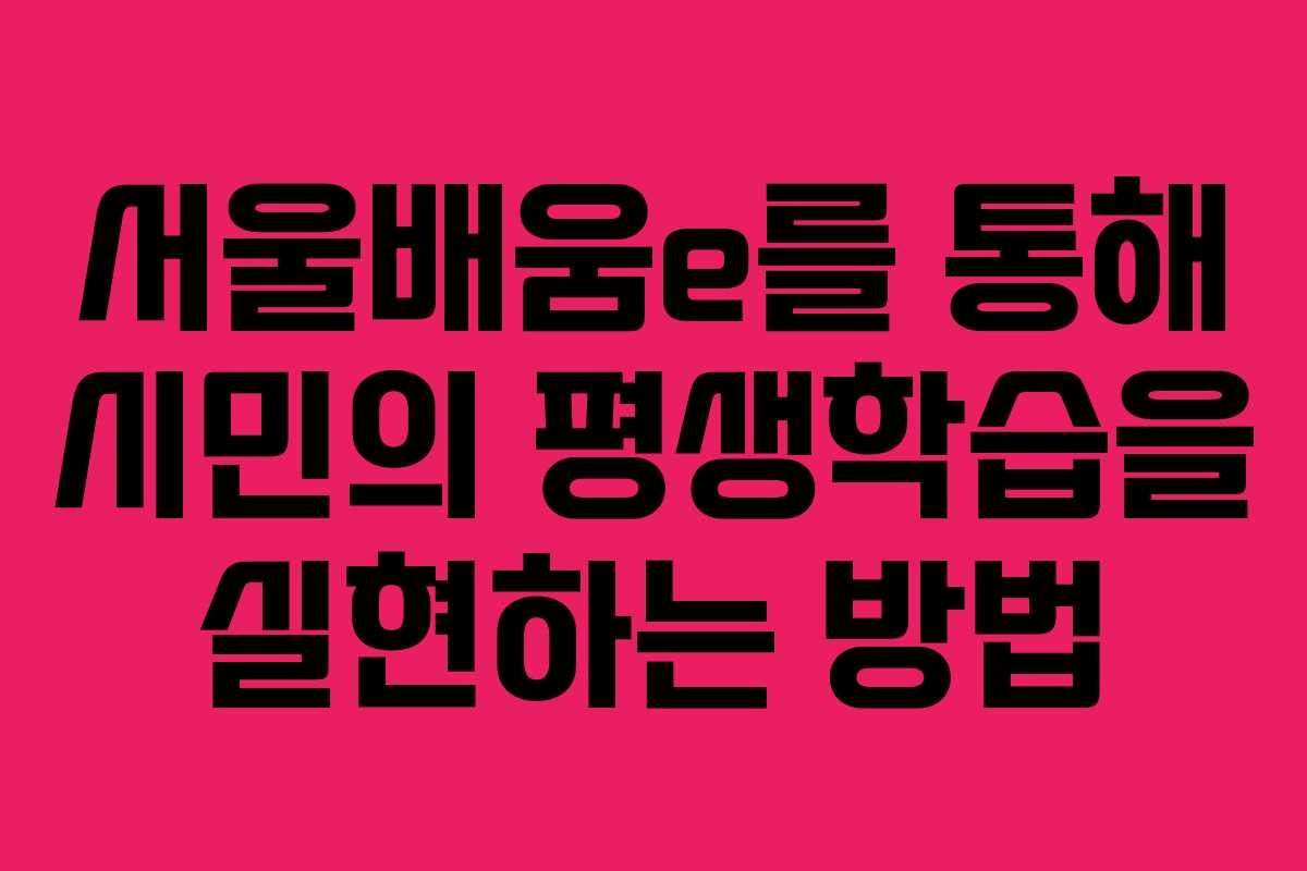 서울배움e는 서울 시민들에게 매우 유용한 학습 기회를 제공하고 있다. 다양한 강좌와 맞춤형 교육을 통해 누구나 쉽게 배울 수 있으며, 시간과 장소에 구애받지 않고 학습할 수 있는 환경을 조성하고 있다. 바쁜 일상 속에서 새로운 것을 배우고자 하는 시민들은 서울배움e에 접속하여 학습을 시작해 보길 권장한다. 여러분의 성장을 위한 첫걸음이 될 것이다.