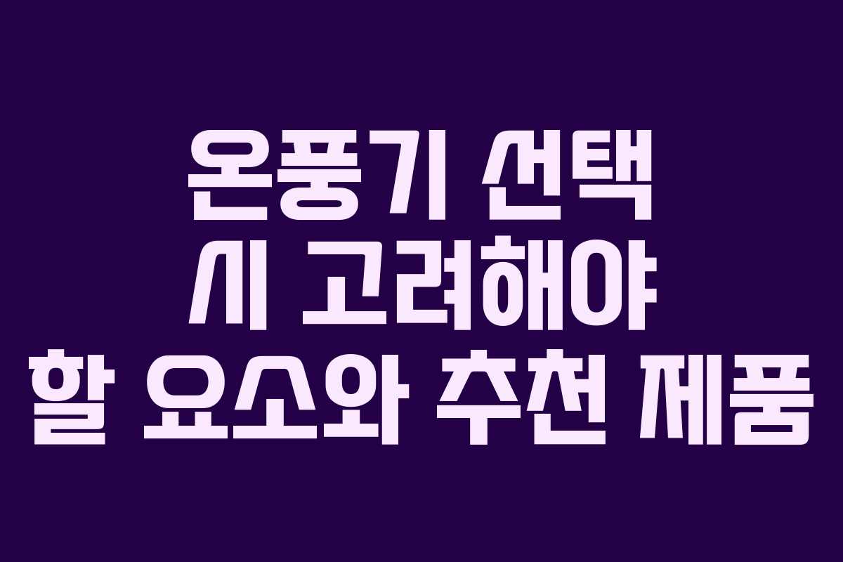 온풍기를 선택할 때 위의 요소를 고려하면 더욱 만족스러운 구매를 할 수 있습니다.