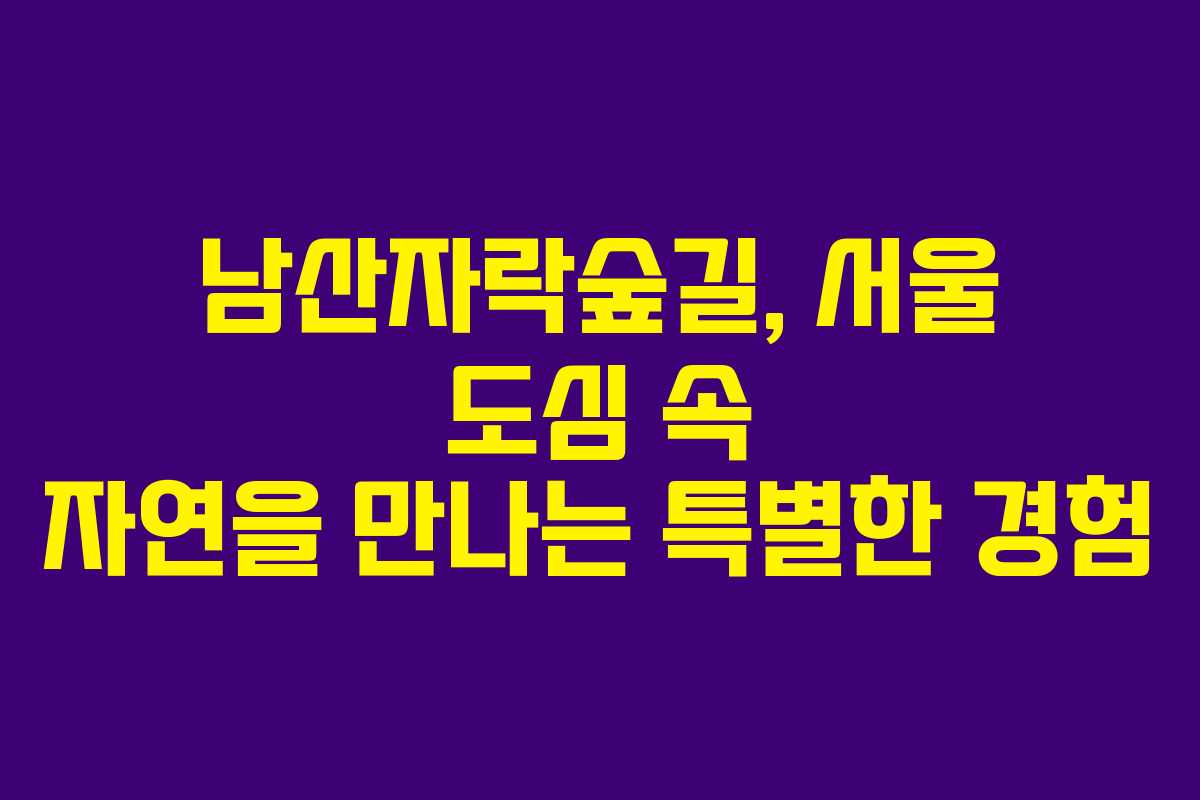 남산자락숲길은 서울의 중심지에서 자연을 느끼고 힐링할 수 있는 특별한 공간으로, 많은 사람들이 이곳에서 소중한 추억을 쌓기를 바란다. 자연과 함께 하는 시간이 주는 기쁨은, 도시 생활 속에서 잊고 지내던 소중한 경험이 될 것이다.
