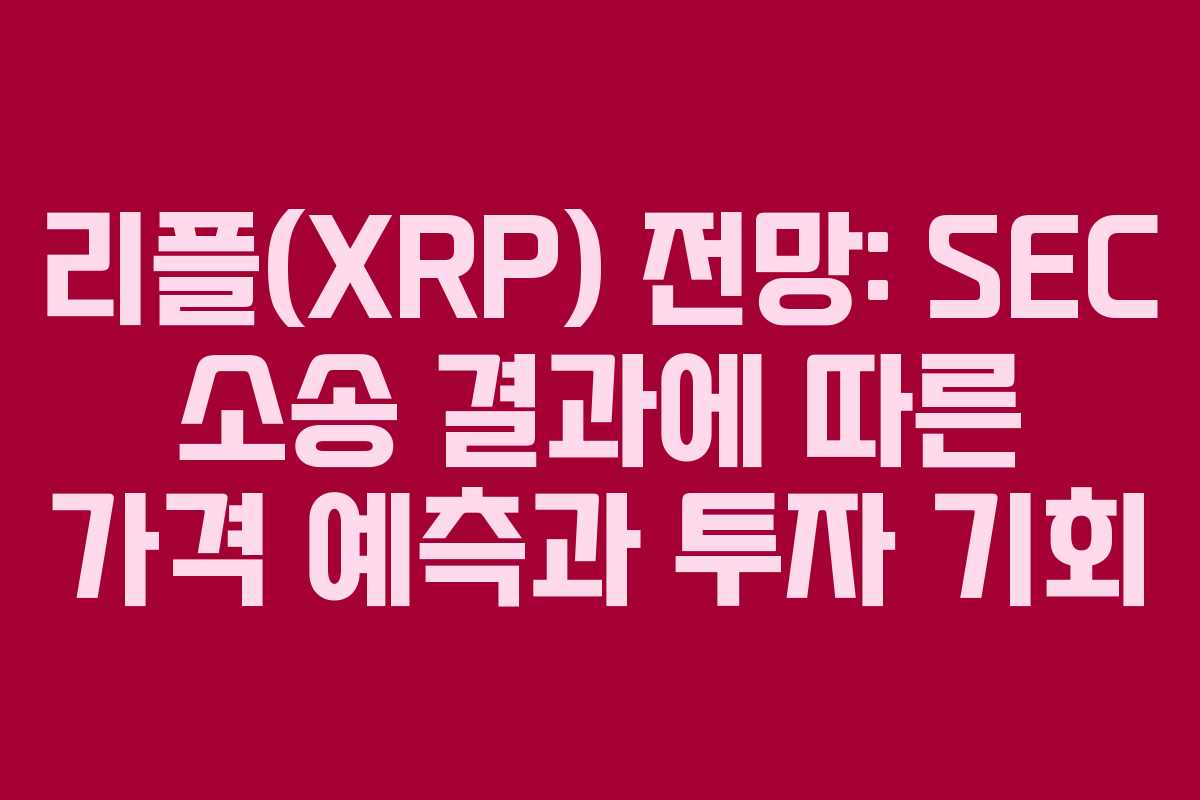 리플(XRP)은 암호화폐 시장에서 항상 주목받는 자산 중 하나이다. 이 글에서는 2024년 하반기부터 2025년까지 리플의 전망을 분석해 보고, SEC 소송의 진행 상황과 관련 전문가들의 의견을 종합하여 가격 예측을 해보겠다.