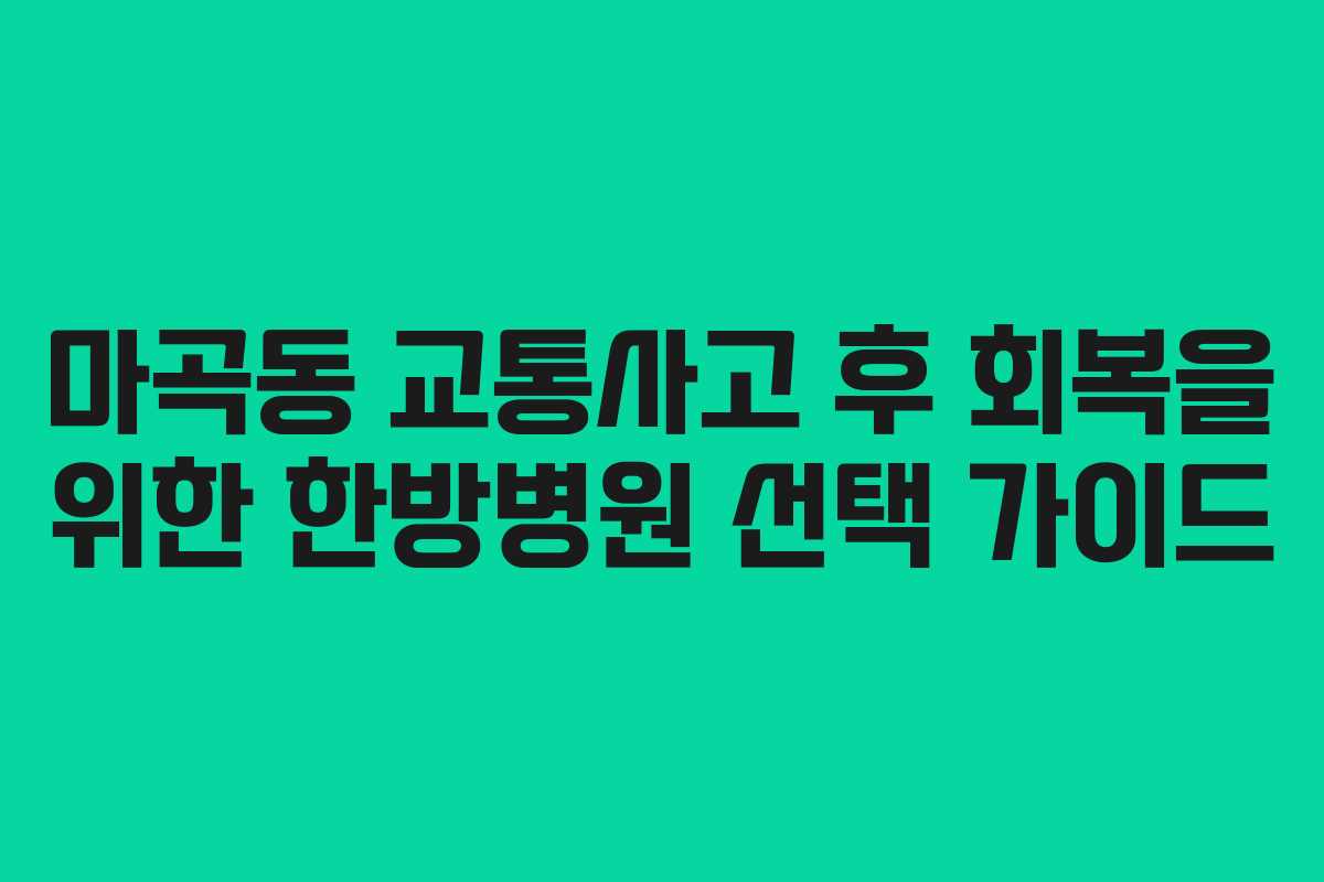 마곡동에는 교통사고 환자를 위한 전문 한방병원이 있다. 이 병원은 한의학과 현대 의학을 결합한 협력 진료 시스템을 운영하고 있다. 환자의 상태를 면밀히 분석하여 맞춤형 치료를 제공하며, 다양한 검사와 치료 방법을 통해 신속한 회복을 도모한다.