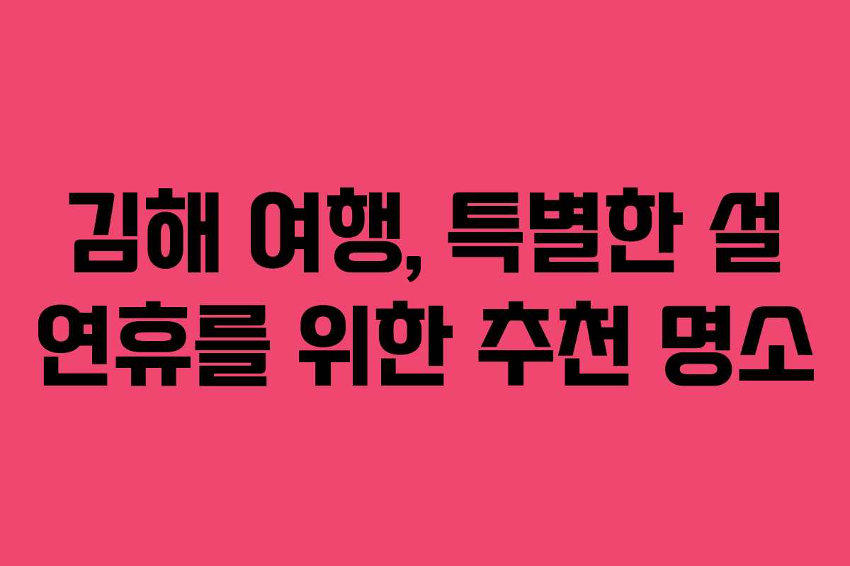 김해는 한국의 전통과 아름다운 자연이 어우러진 매력적인 도시로, 설 연휴를 맞아 많은 사람들이 방문하기 좋은 여행지입니다. 이곳에서는 사랑하는 사람들과 함께 소중한 시간을 보낼 수 있는 다양한 명소가 있습니다. 이번 설 연휴에 김해에서 즐길 수 있는 멋진 장소들을 소개하겠습니다.