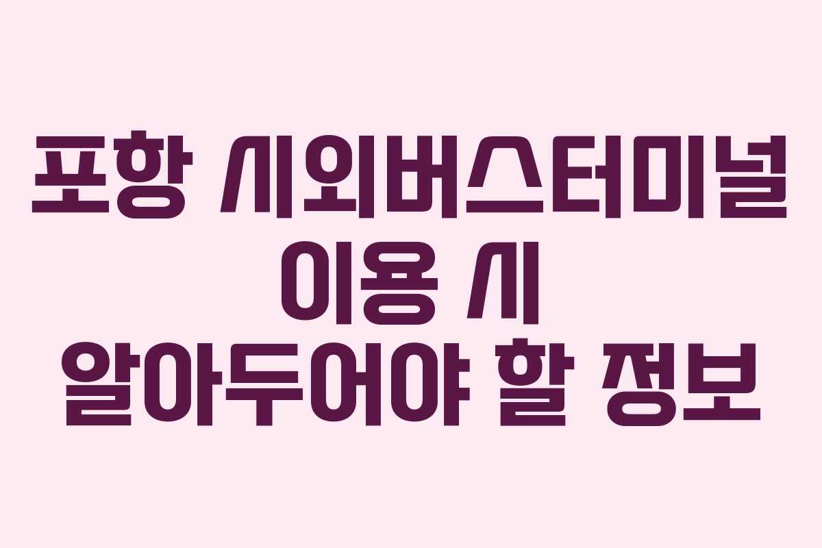 포항 시외버스터미널에서는 심야버스도 운영되고 있으니, 필요한 시간에 맞춰 체크하면 좋습니다.