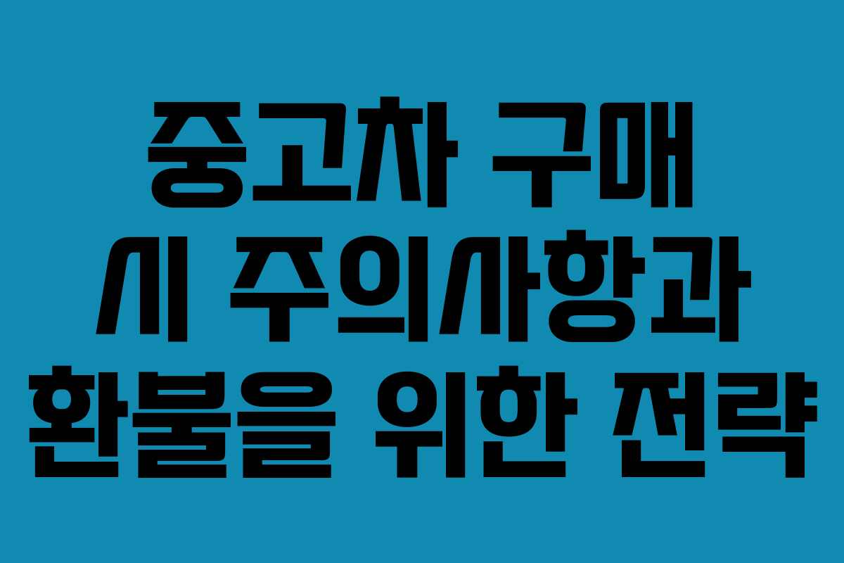 중고차를 구매할 때는 여러 가지 요소를 고려해야 합니다. 특히 환불과 관련된 조건을 명확히 이해하고 대응하는 것이 중요합니다. 이 글에서는 안전한 중고차 구매를 위한 팁과 환불을 쉽게 받을 수 있는 방법을 안내합니다.