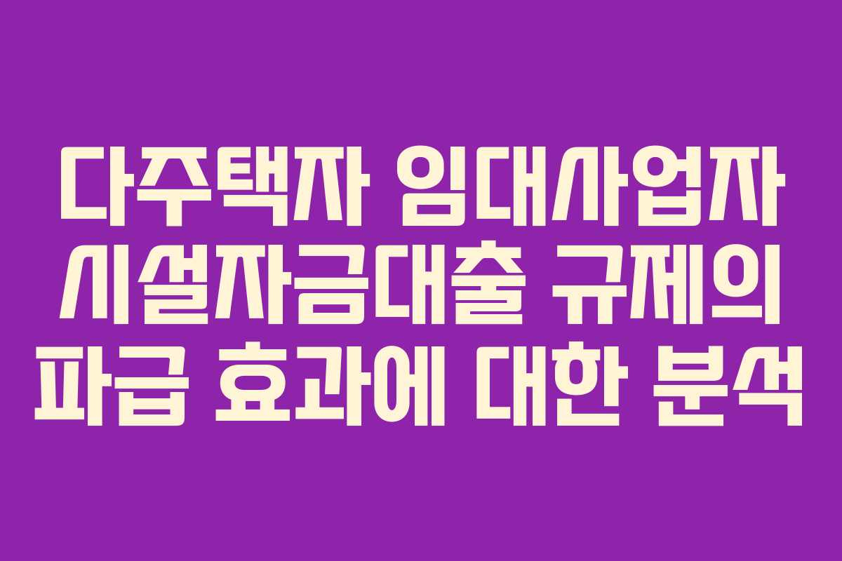 부동산 시장에서 다주택자와 임대사업자에 대한 시설자금대출 규제가 예고됨에 따라, 이로 인한 파급 효과를 분석할 필요성이 커지고 있다. 이번 규제는 기존의 대출 관행에 큰 변화를 가져올 것으로 예상되며, 많은 이들이 이에 대한 심각성을 간과하고 있다. 각 파급 경로를 살펴보면, 유동성 위기와 금융권의 건전성, 그리고 주택 시장의 가격 구조 재편 등 다양한 측면에서 영향을 미칠 것으로 보인다.