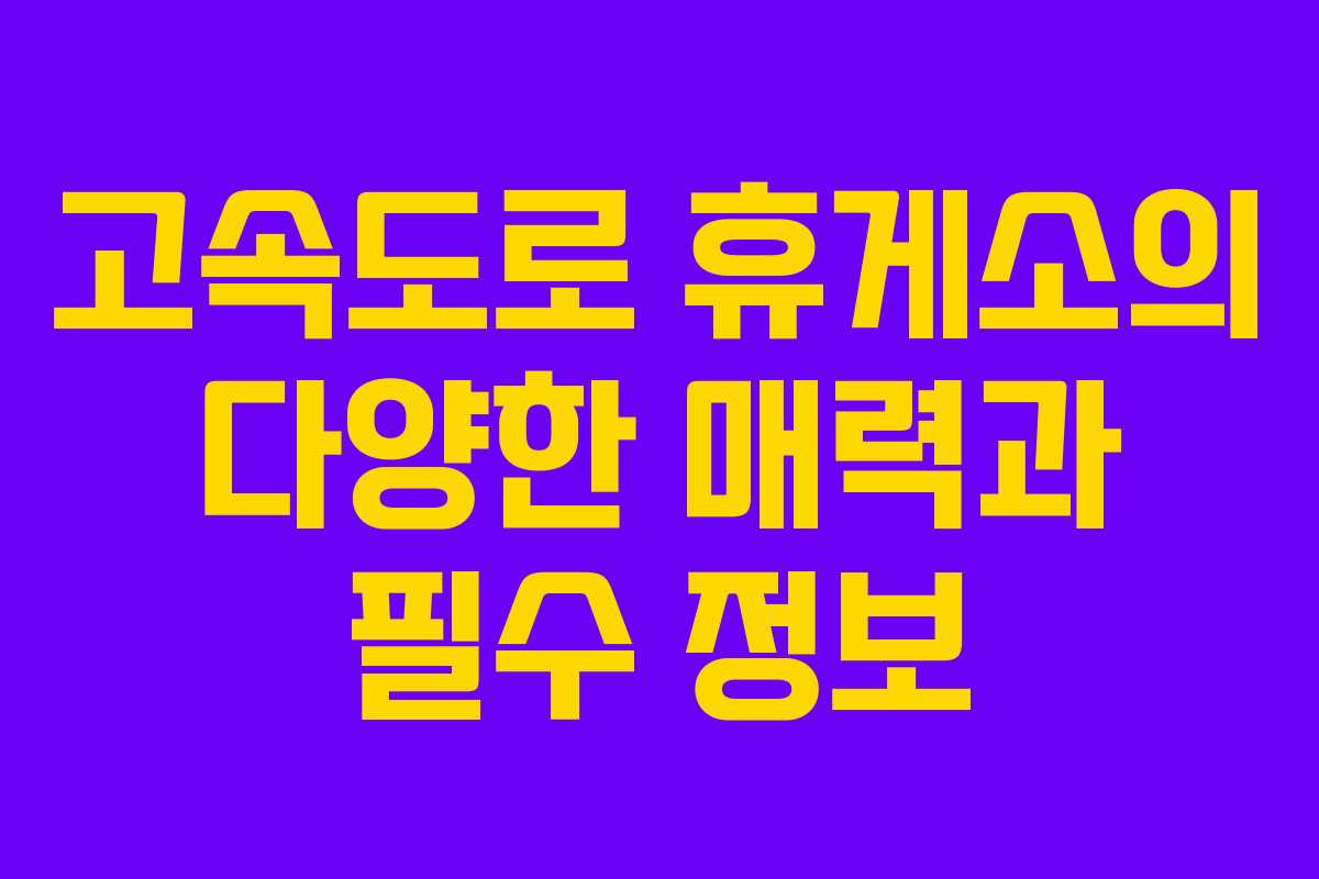 고속도로 휴게소를 방문할 때 몇 가지 유의사항을 기억하면 더욱 알찬 경험을 할 수 있습니다. 특히, 다양한 매장이 운영 중인 시간대를 체크하고, 각 매장에서 제공하는 메뉴를 미리 알아두면 더욱 즐거운 시간을 보낼 수 있습니다. 또한, 반려동물과 함께하시는 분들은 애견 놀이터의 이용 가능 여부를 확인하여 편리하게 이용하시길 바랍니다.