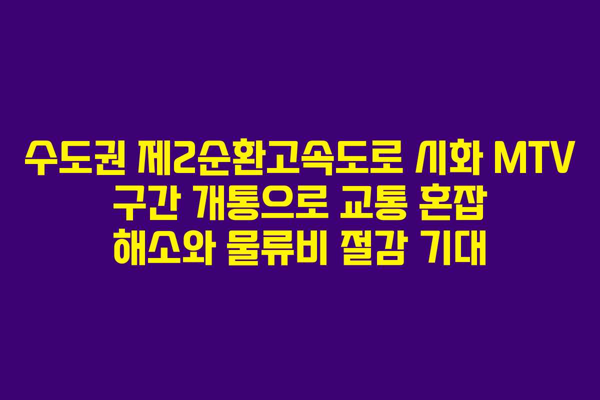고속국도 제400호 수도권 제2순환고속도로 시화 MTV 구간은 2.65km에 달하는 왕복 4차로 신설 노선으로, 2018년에 착공되어 총 1,977억원의 사업비가 투입되었다. 이 도로는 평택시흥고속도로 남안산분기점에서 시화나들목을 연결하며, 지역 주민과 기업의 교통 편의를 크게 개선할 것으로 기대된다. 개통일인 10월 25일 17시에는 시화영업소에서 공식 개통 행사가 열렸으며, 관계자와 지역 주민들이 참석해 기념했다.
