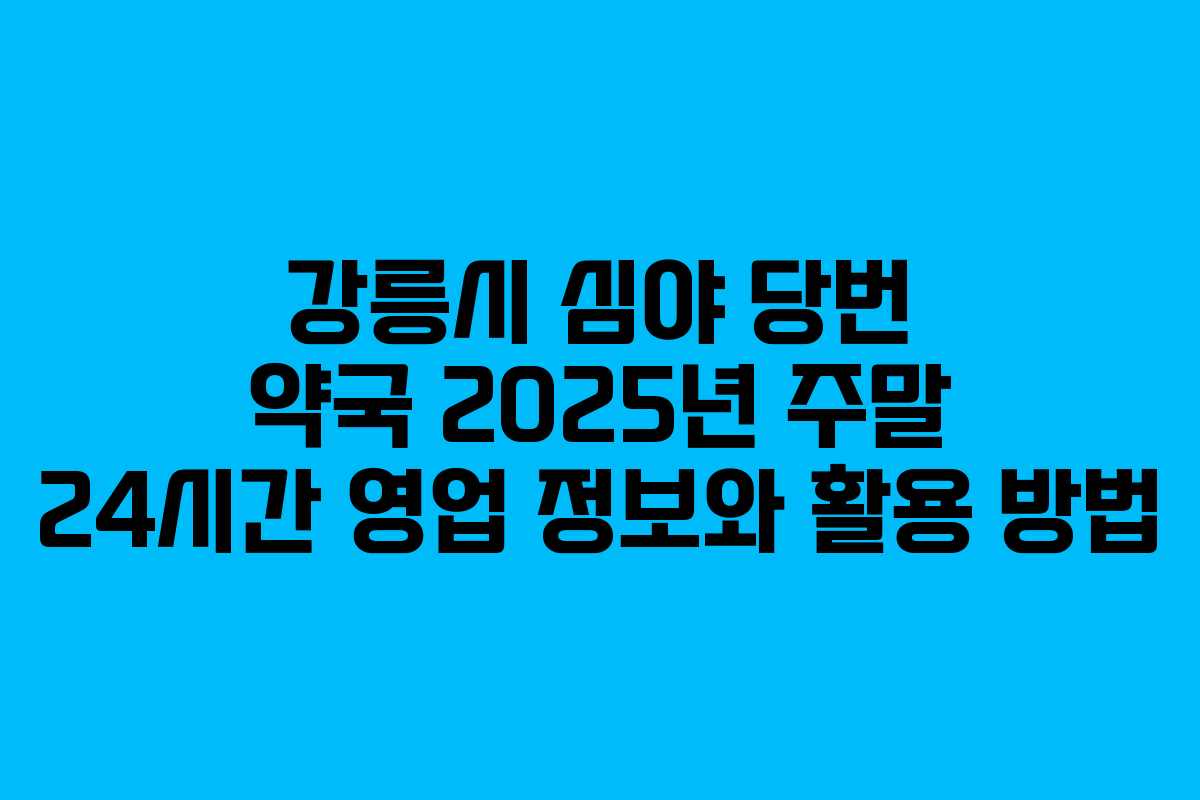 강릉시의 심야 당번 약국은 토요일과 일요일에 24시간 운영됩니다. 각 약국의 세부 운영 시간은 사전에 확인하는 것이 좋습니다.