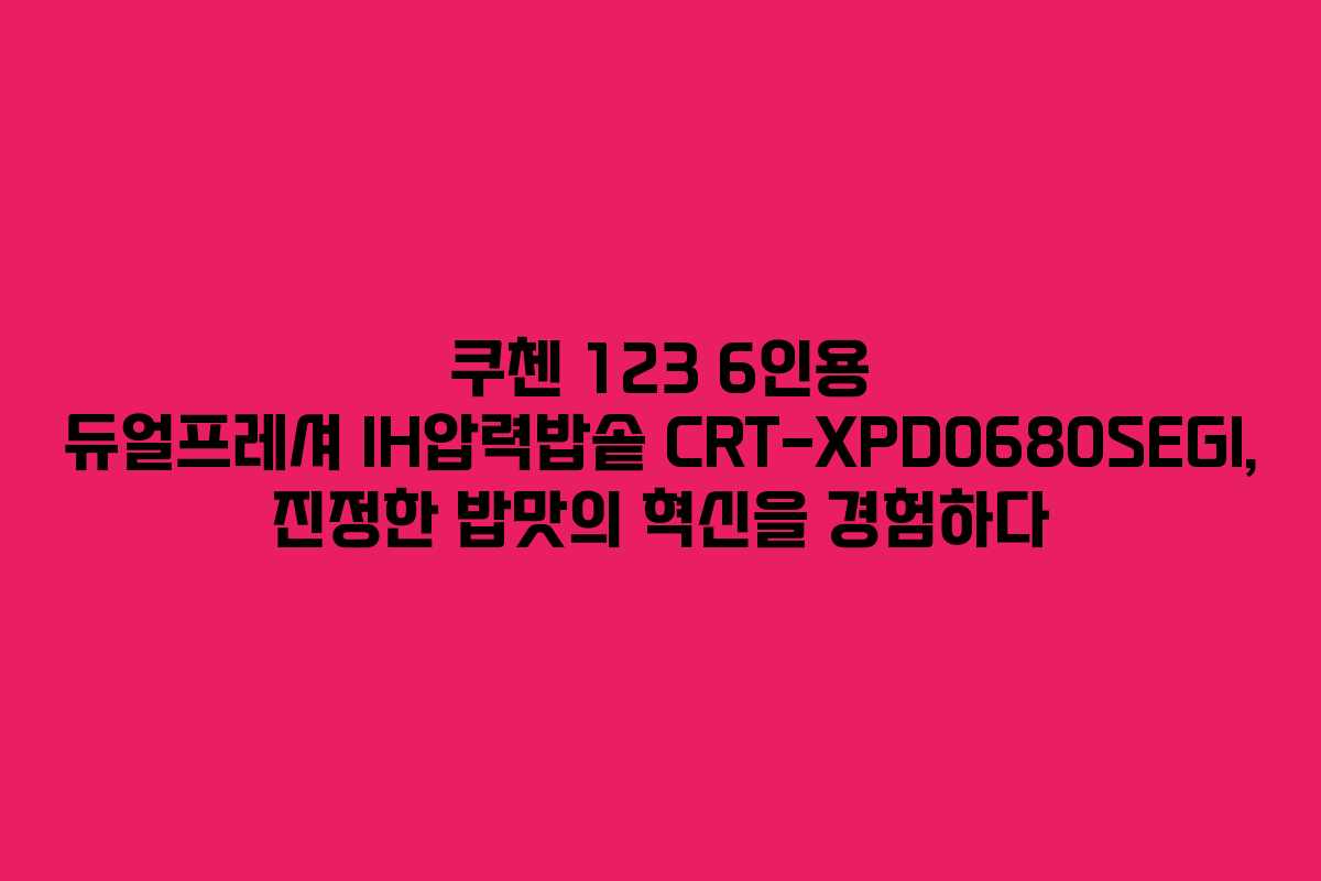쿠첸 123 6인용 듀얼프레셔 IH압력밥솥 CRT-XPD0680SEGI는 최신 기술이 접목된 제품으로, 많은 사용자에게 긍정적인 반응을 얻고 있습니다. 뛰어난 밥맛과 다양한 요리 기능, 세련된 디자인이 조화로운 제품으로, 주방에서의 활용도가 높습니다. 다만, 가격대와 사용 시간에 대한 고려가 필요해 보입니다. 이러한 요소를 종합적으로 고려하여 선택할 수 있는 좋은 제품이라 할 수 있습니다.