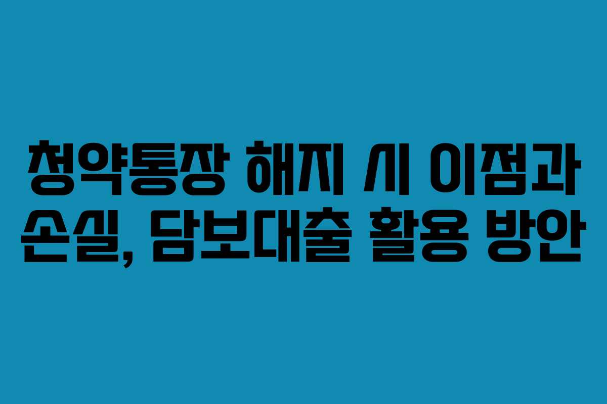 청약통장을 해지하는 것은 급전이 필요할 때 흔히 고려하는 선택지 중 하나입니다. 그러나 이 결정을 내리기 전, 해지로 인해 발생할 수 있는 손실과 대안인 담보대출의 활용 방안에 대해 정확히 이해하는 것이 중요합니다. 2026년 기준으로 청약통장 해지 시의 이자 계산 방법과 함께 손실 항목을 정리하고, 담보대출을 통해 자금을 확보할 수 있는 방법을 안내합니다.