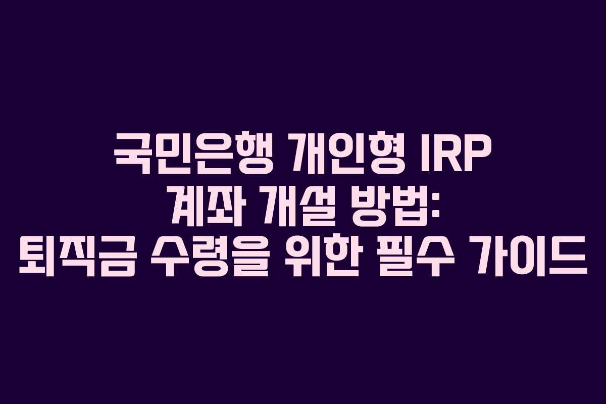 🤔 국민은행 개인형 IRP 계좌 개설에 대한 궁금증