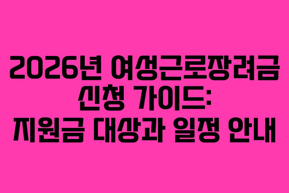 2026년 기준으로 여성근로장려금의 신청 대상은 소득과 재산 기준을 충족해야 합니다. 이를 통해 경제적 지원을 받을 수 있는 기회를 놓치지 않도록 하여야 합니다.