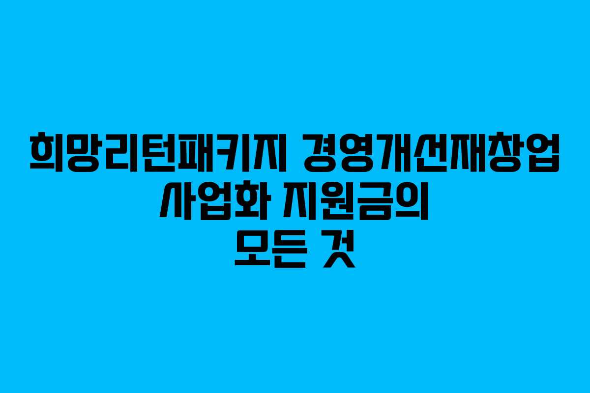 희망리턴패키지 경영개선재창업 사업화 지원금의 모든 것
