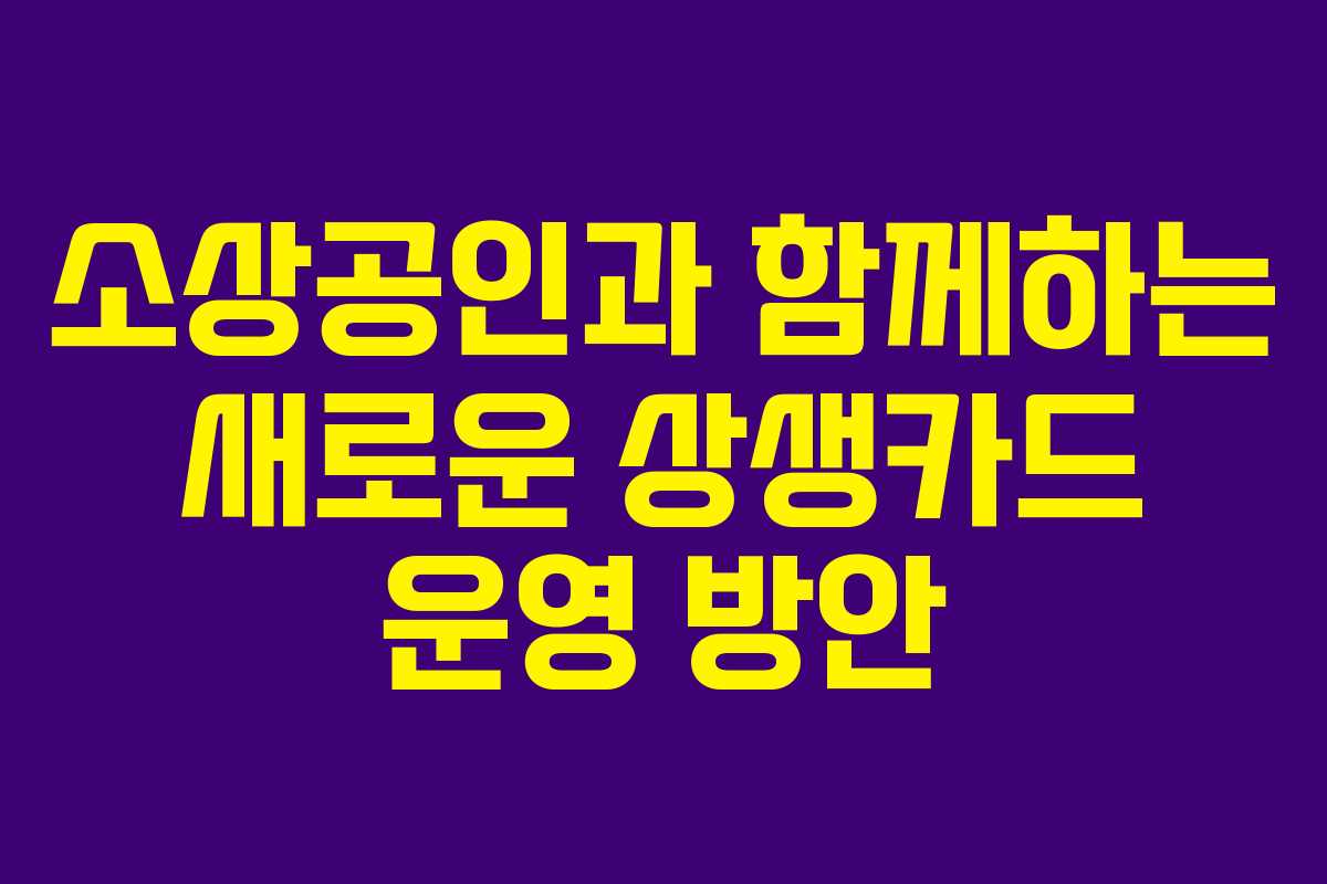 고객 교육: 고객들에게 상생카드의 혜택과 사용 방법에 대해 적극적으로 안내합니다. 이를 통해 고객의 참여를 유도하고, 매출 상승의 기회를 창출할 수 있습니다.