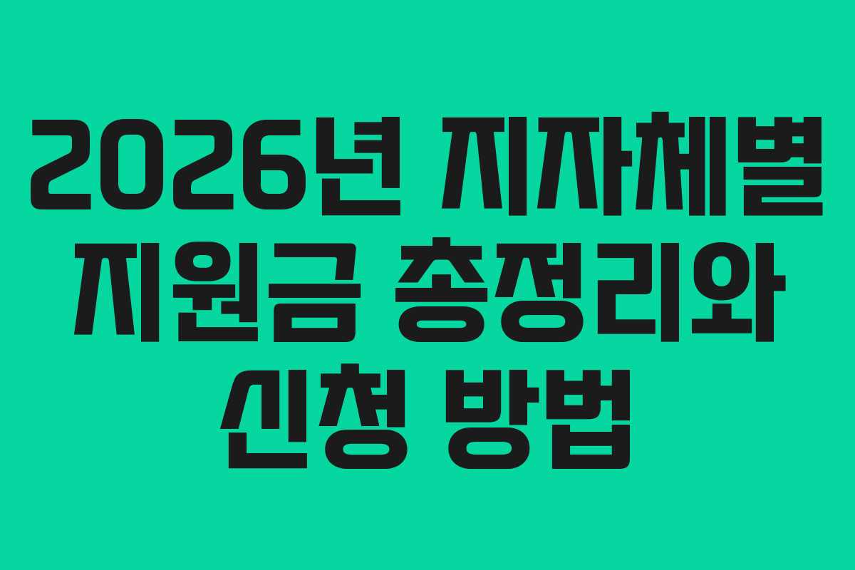 2026년 기준으로 각 지방자치단체에서 제공하는 다양한 지원금에 대한 최신 정보를 안내합니다. 서울, 경기, 부산 등 주요 지자체별로 어떤 지원금이 있는지, 신청 방법과 자격 요건을 자세히 살펴보겠습니다.
