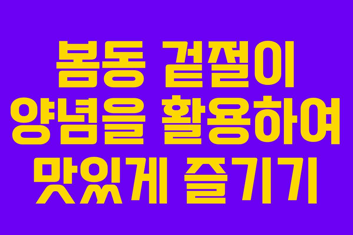 이 가이드를 통해 봄동 겉절이를 손쉽게 만들 수 있습니다. 간단한 방법으로도 식탁을 화려하게 꾸며보세요.