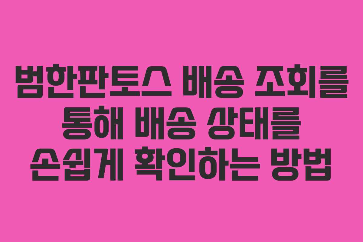 범한판토스 배송 조회를 통해 배송 상태를 손쉽게 확인하는 방법