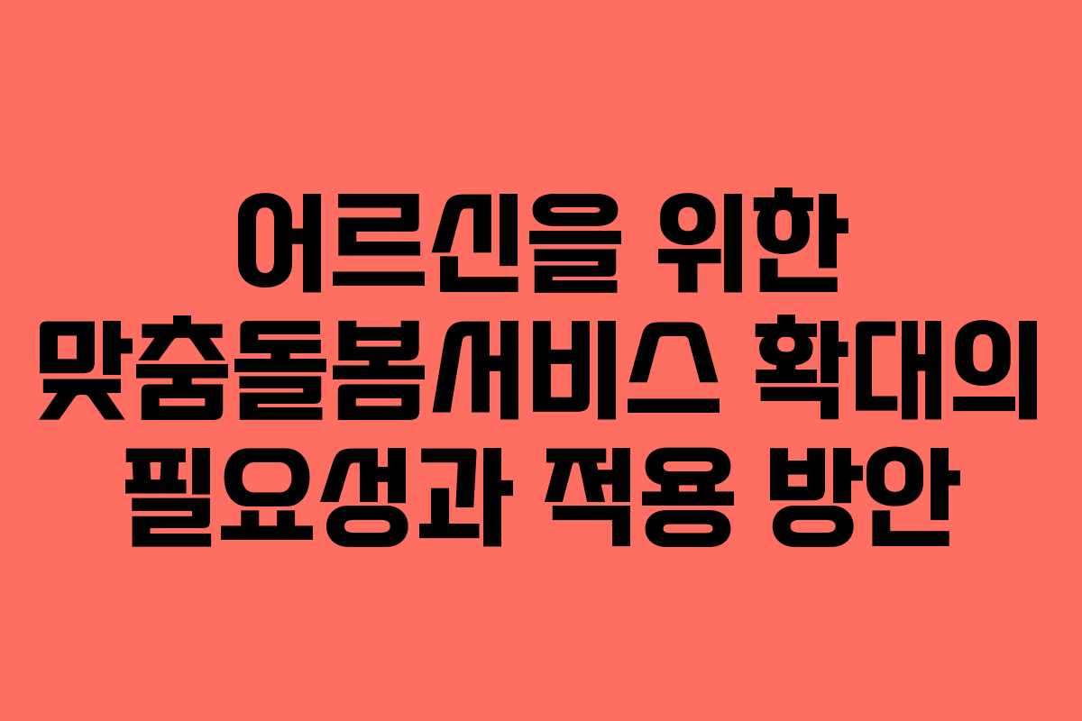 노인 맞춤돌봄서비스의 확대는 단순한 서비스 제공을 넘어, 지역사회 전체의 건강한 노인 복지를 위한 중요한 발판이 될 것이다. 앞으로도 정부와 지역사회가 협력하여 어르신들이 안전하고 건강한 노후를 보낼 수 있도록 지속적으로 노력해야 한다. 이러한 방향으로 나아간다면, 어르신들은 보다 행복하고 안정적인 삶을 영위할 수 있을 것이다.