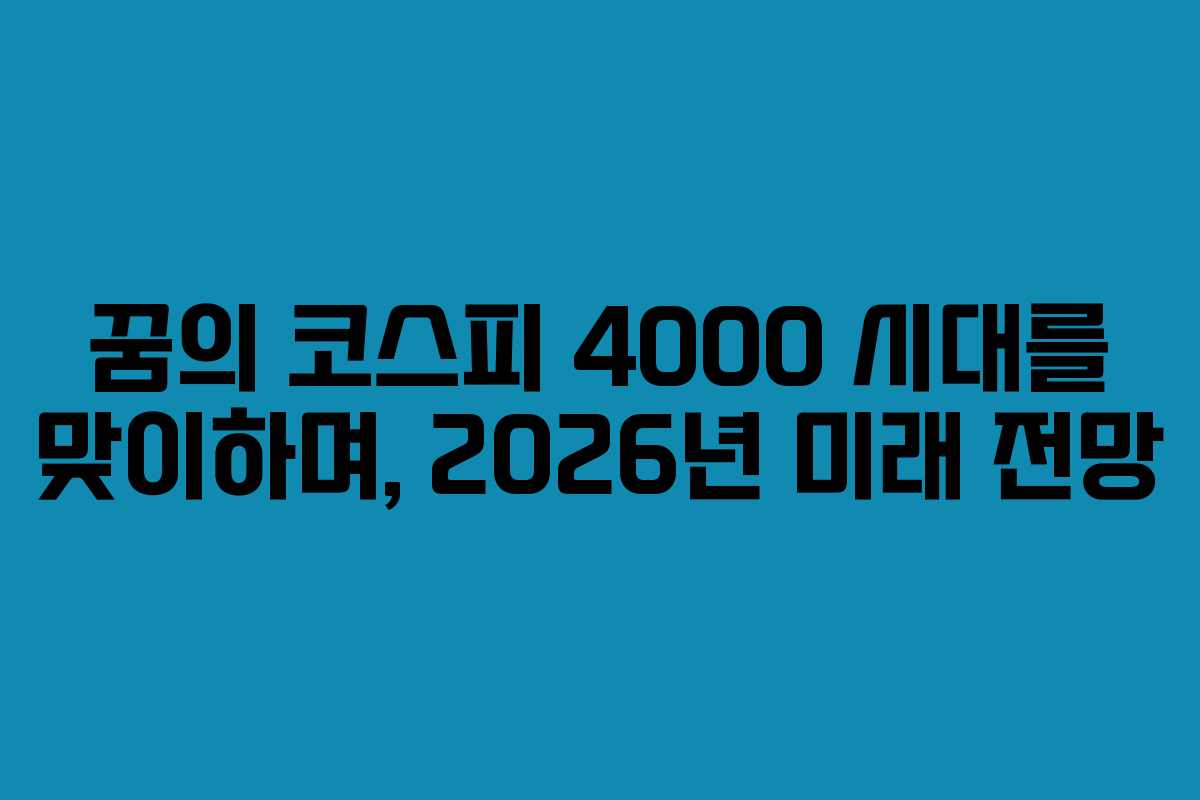 2026년 한국 주식 시장은 여러 변화와 함께 앞으로 나아갈 것입니다. 코스피 4000을 넘어 5000을 향해 나아가는 과정에서 투자자들은 지속적으로 시장을 분석하고 전략을 조정해야 합니다. 이러한 과정을 통해 성공적인 투자로 이어질 수 있습니다. 코스피의 미래는 기대 이상이 될 수 있으며, 이를 준비하는 자세가 중요합니다.