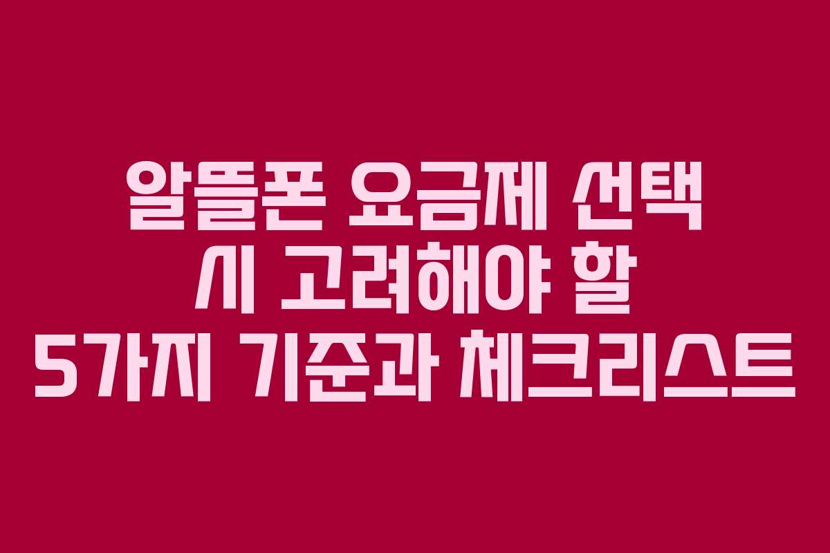 알뜰폰 요금제 선택 시 고려해야 할 5가지 기준과 체크리스트