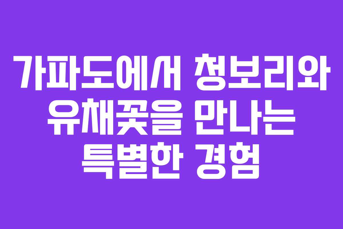 가파도는 단순히 청보리로 유명한 곳이 아니다. 유채꽃과 함께하는 아름다운 풍경, 자전거로의 자유로운 여행, 그리고 지역 주민들과의 교류를 통해 따뜻한 제주도의 정서를 느낄 수 있다. 2026년의 가파도는 이전과는 다른 모습이지만, 여전히 특별한 경험을 선사하는 장소임을 잊지 말자. 이번 여행에서 느낀 점들을 바탕으로 다음에는 더욱 알찬 여행을 계획해 보길 바란다.