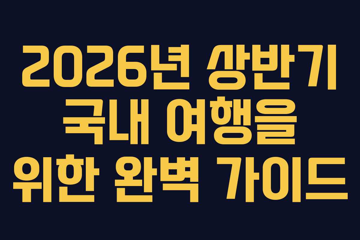 2026년 상반기 국내 여행을 위한 완벽 가이드