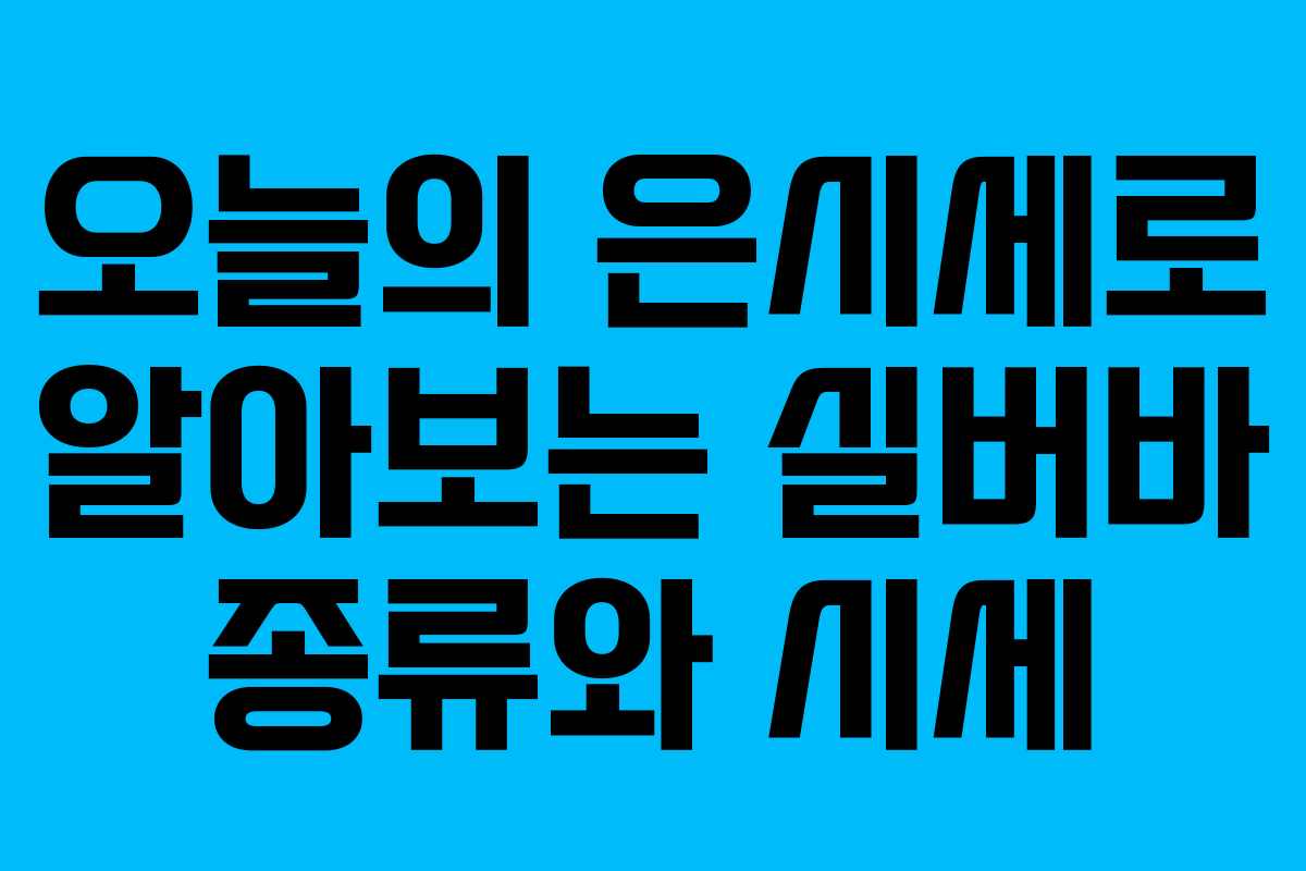 - 실버바의 종류를 확인하고, 자신의 투자 목적에 맞는 선택을 한다.