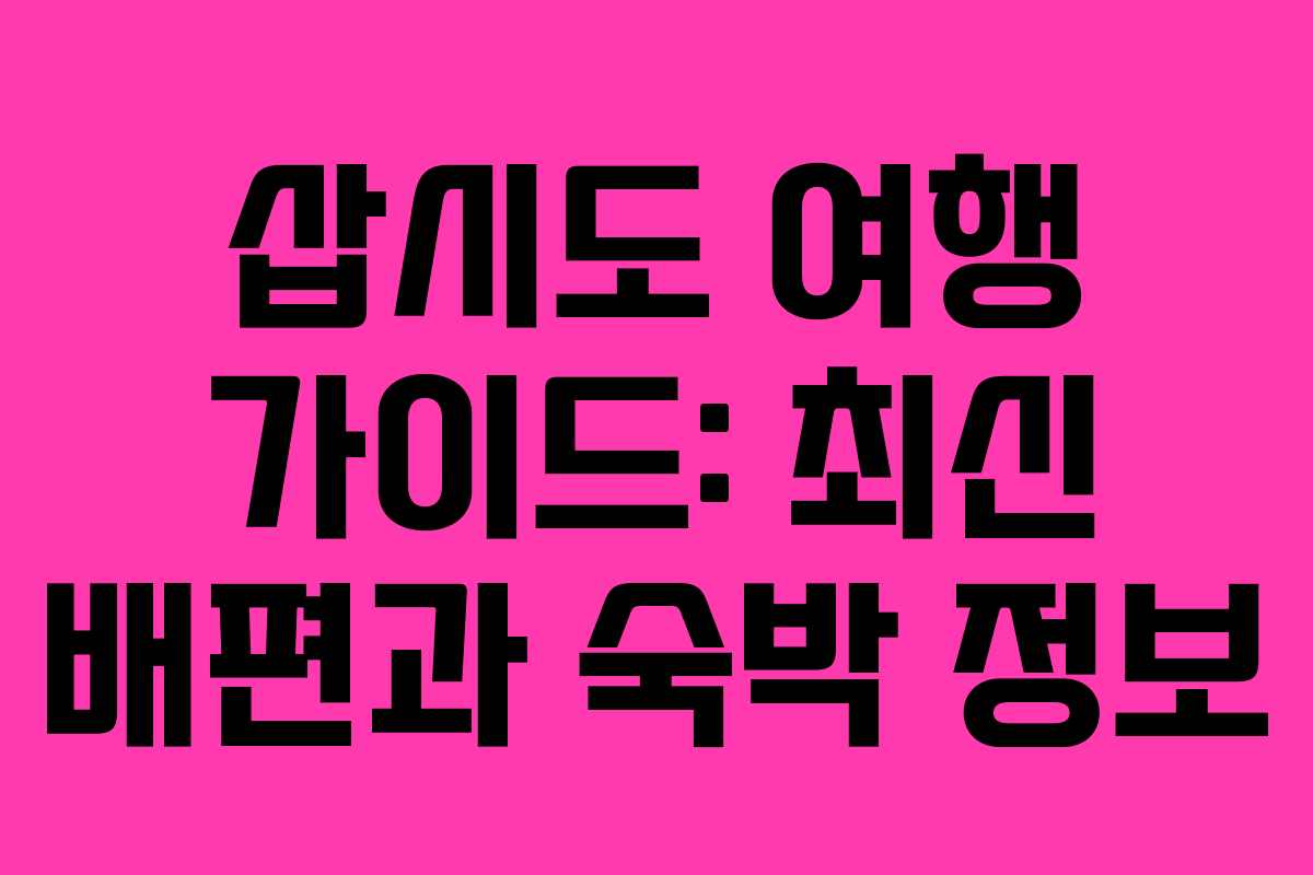 삽시도는 자연과 해양 액티비티를 동시에 즐길 수 있는 최적의 여행지입니다. 이 가이드를 참고하여 멋진 여행을 계획하시길 바랍니다.