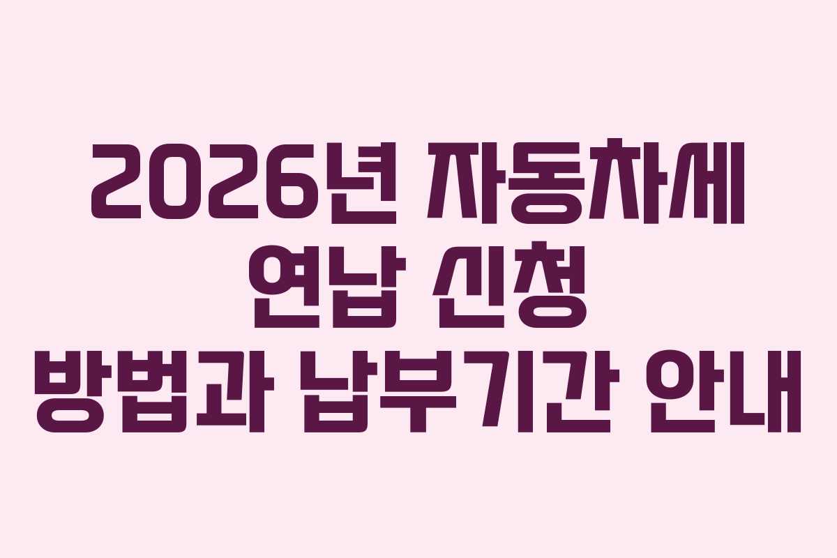 연납 신청 기간은 2026년 6월 안에 납부를 마무리해야 하며, 이 시점을 놓치지 않도록 주의가 필요합니다. 할인 혜택이 적용되니 시간을 내어 신청하는 것이 좋습니다.