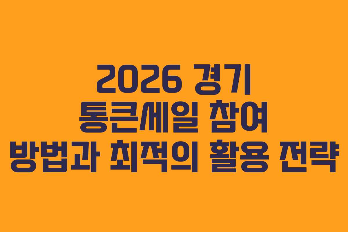 2026 경기 통큰세일 참여 방법과 최적의 활용 전략
