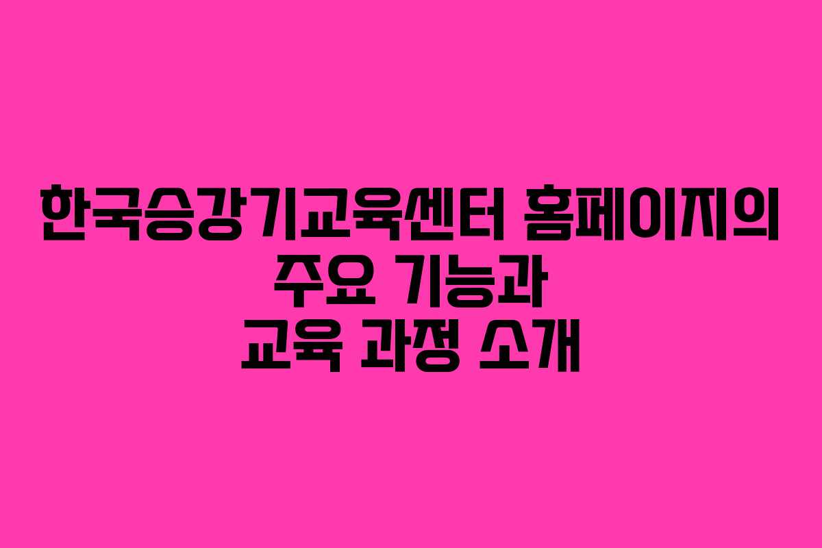한국승강기교육센터 홈페이지는 한국승강기안전공단에서 운영하는 승강기 전문 교육 기관으로서, 다음과 같은 기능을 갖추고 있다.