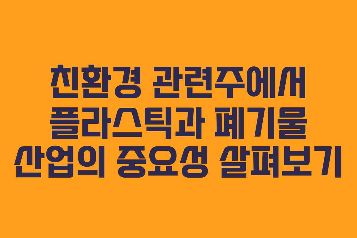 4차 산업혁명 시대가 도래하면서 인공지능, 사물인터넷, 빅데이터와 같은 기술이 주목받고 있습니다. 그러나 이와 함께 환경 문제도 더욱 부각되고 있습니다. 환경에 대한 관심이 증대됨에 따라 기업들이 친환경적인 솔루션을 모색하고 이를 기반으로 한 투자가 이루어지고 있는 현실입니다. 특히 플라스틱과 폐기물 관련 산업은 이러한 흐름 속에서 큰 수혜를 받을 것으로 예상되며, 다양한 기업들이 이 분야에 진출하고 있습니다.