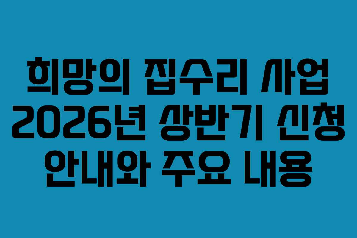 희망의 집수리 사업 2026년 상반기 신청 안내와 주요 내용