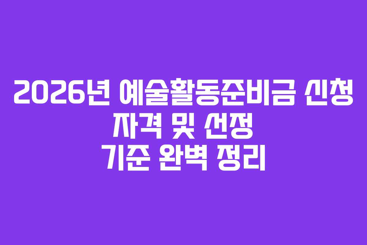 2026년 예술활동준비금 신청 자격 및 선정 기준 완벽 정리