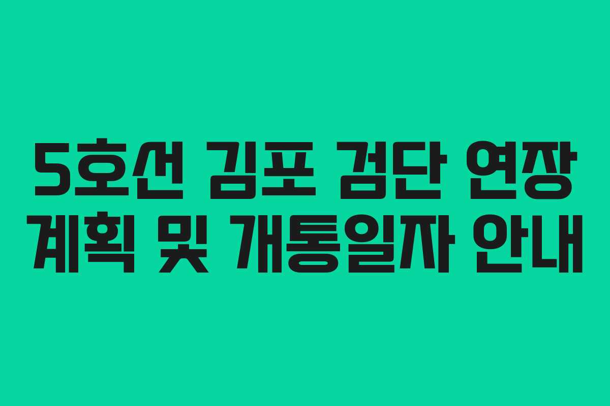 실전 가이드: 5호선 김포 검단 연장 활용 방안