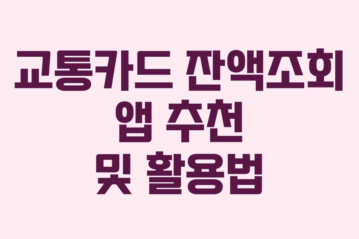 교통카드 잔액조회 앱 활용 전략