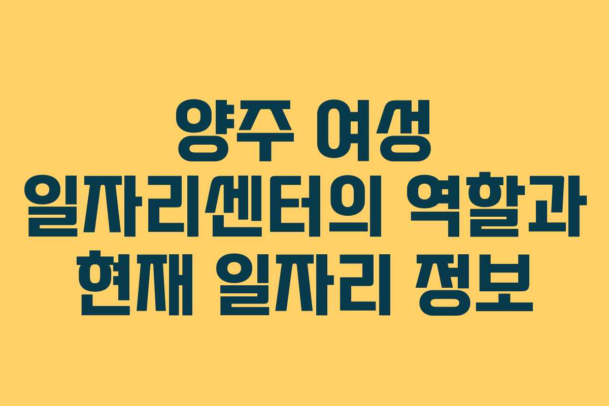 - 실전 가이드: 양주 여성 일자리센터 활용하기