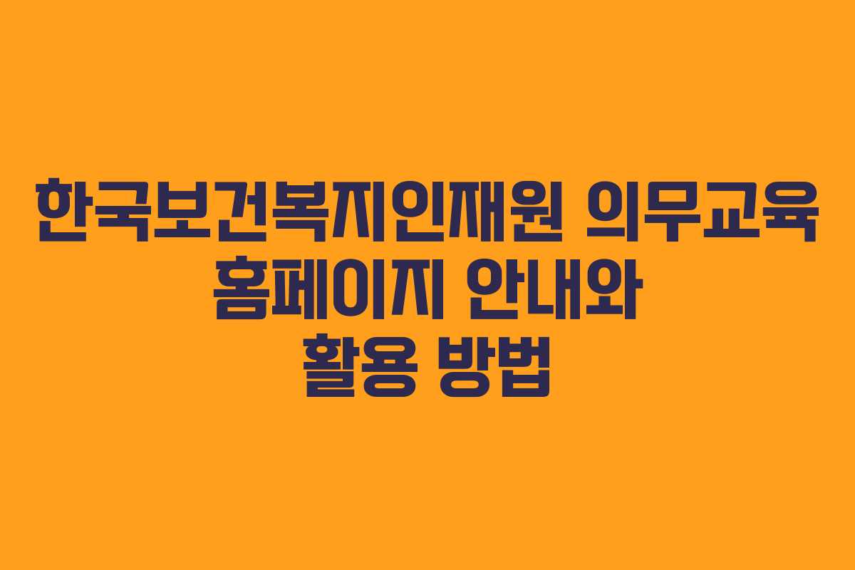 - 한국보건복지인재원 의무교육 개요와 중요성 이해하기
