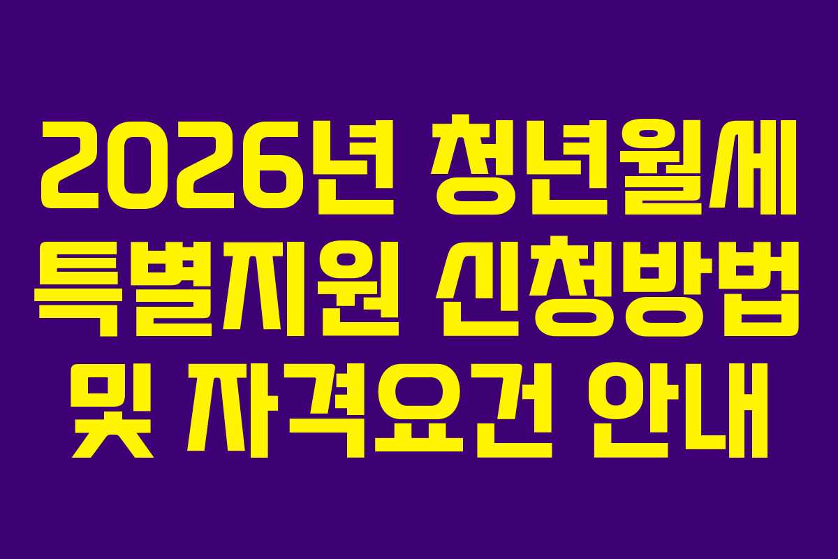2026년부터 시행되는 청년월세 특별지원은 최대 24개월 동안 청년 1인당 최대 480만 원의 주거비를 지원하는 제도입니다. 이 제도는 청년들이 안정적인 주거 환경을 구축할 수 있도록 돕기 위해 마련되었습니다. 지원 대상은 다음과 같은 요건을 충족해야 합니다.