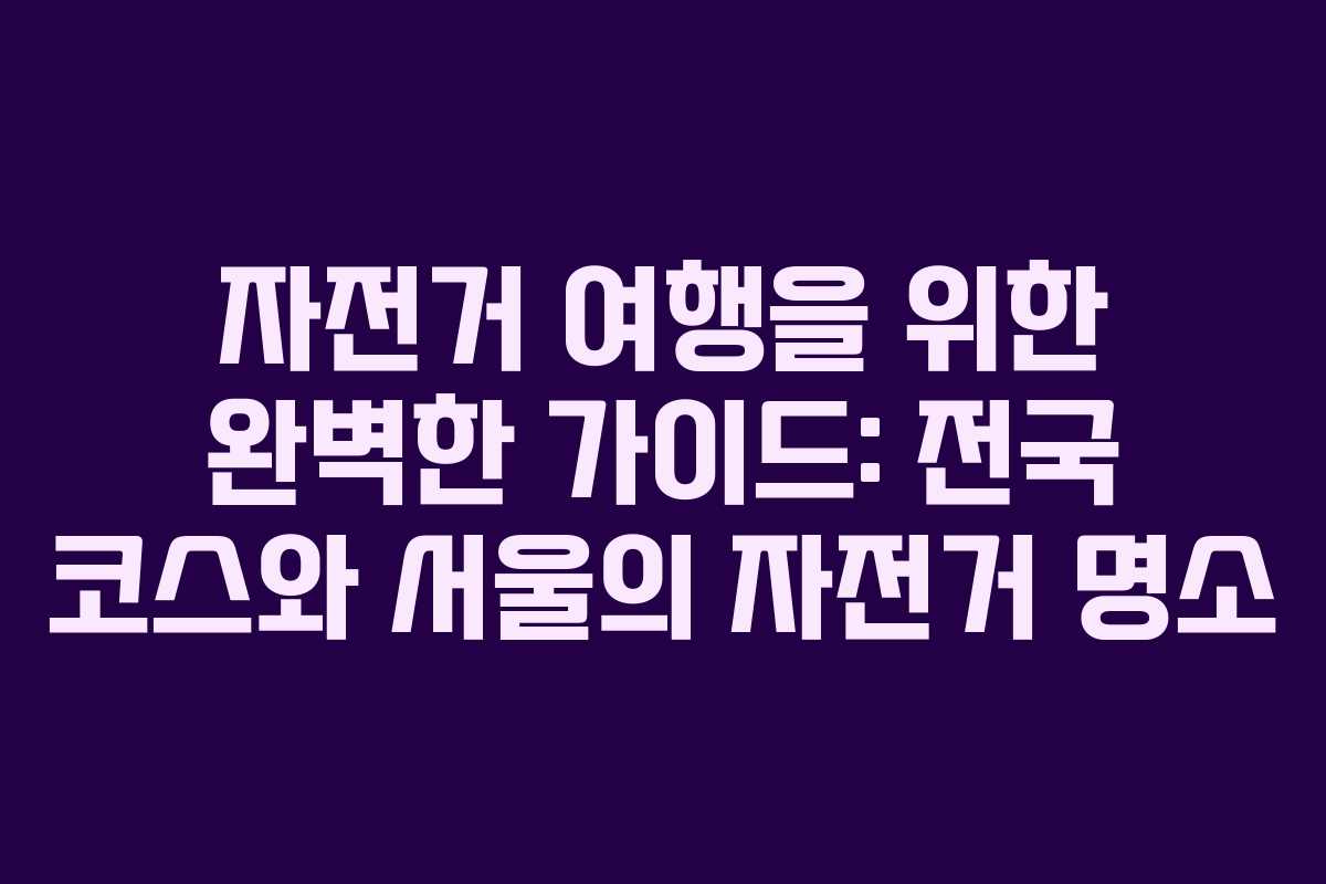 자전거는 단순한 이동 수단을 넘어 새로운 경험과 모험을 선사하는 훌륭한 방법입니다. 전국 각지에는 자전거 여행을 즐길 수 있는 다양한 코스가 마련돼 있으며, 서울에서도 자전거를 타기에 적합한 장소가 많이 있습니다. 이 글에서는 자전거 여행의 매력을 더해줄 여러 코스와 서울의 자전거 타기 좋은 곳에 대해 소개합니다. 여러분의 다음 자전거 여행이 더욱 즐거워지도록 다양한 정보를 제공하겠습니다.