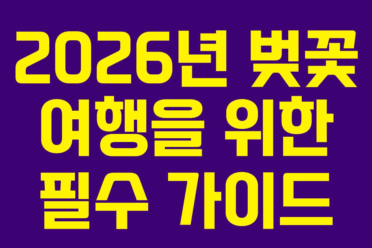 봄이 다가오면 많은 이들의 마음속에 피어나는 것은 역시 벚꽃입니다. 예년보다 일찍 개화할 것으로 예상되는 2026년 벚꽃 시즌을 맞아, 아름다운 명소들을 찾아가고자 하는 분들이 많을 것입니다. 이번 글에서는 벚꽃 명소와 여행 준비를 위한 다양한 정보를 제공하여 여러분의 여행이 특별한 경험이 될 수 있도록 돕겠습니다.